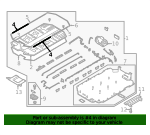 High voltage, middle front. High voltage, battery assembly, center, front. High voltage, 2023-25, center, front. High voltage, middle rear.